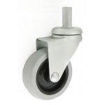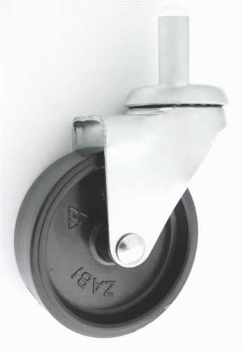 Koła i zestawy kołowe meblowe w obudowie z trzpieniem składają się z koła tworzywowego bądź tworzywowo-gumowego oraz ze stabilnej stalowej obudowy tłoczonej z trzpieniem. Koło występujące w tej obudowie osadzone i montowane jest z kielichem obudowy za pomocą nitu. Precyzyjne wykonanie obudowy skrętnej z płytką mocującą umożliwia obracanie zestawu skrętnego w pionie oraz dowolne manewry maszynami, środkami transportowymi itd. Specjalna budowa pozwala na łatwe skręcanie zestawem bez dodatkowych sił i środków pomocniczych oraz zachowanie stabilnego kierunku ruchu w linii prostej. Zestawy z trzpieniem posiadają trzpień gładki lub gwintowany, który umożliwia montaż w rurce lub specjalnie przygotowanym otworze.