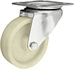 Koła i kółka tworzywowe odporne na wysoką temperaturę w obudowie skrętnej składają się koła o jednolitym korpusie wykonanym wtryskowo z poliamidu PA 66 oraz ze stabilnej stalowej obudowy tłoczonej z płytką mocującą bądź obudowy spawanej. Koło występujące w tej obudowie osadzone jest na tulejce, montowane jest z kielichem obudowy za pomocą śruby i nakrętki. Precyzyjne wykonanie obudowy skrętnej z płytką mocującą umożliwia obracanie zestawu skrętnego w pionie oraz dowolne manewry maszynami, środkami transportowymi itd. Specjalna budowa pozwala na łatwe skręcanie zestawem bez dodatkowych sił i środków pomocniczych oraz zachowanie stabilnego kierunku ruchu w linii prostej. Koła wykonane z poliamidu PA 66 zawierają 30% włókna szklanego, co wpływa na jego stabilizację termiczną, zapewnia wysoką odporność cieplną. Koła te występuje również w kolorze czarnym. Dostępne jest z łożyskiem ślizgowym. Koła i kółka tworzywowe odporne na wysoką temperaturę charakteryzują się wysoką odpornością na ścieranie oraz na temperaturę od -40 do +130°C.
