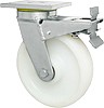 Koła i zestawy kołowe do dużych obciążeń w obudowie skrętnej z hamulcem składają się koła wykonanego wtryskowo z poliamidu PA 6 bądź koła poliamidowo-poliuretanowe oraz ze stabilnej stalowej spawanej obudowy z hamulcem mechanicznym. Koło występujące w tej obudowie osadzone jest na tulejce, montowane jest z kielichem obudowy za pomocą śruby i nakrętki. Precyzyjne wykonanie obudowy skrętnej z płytką mocującą umożliwia obracanie zestawu skrętnego w pionie oraz dowolne manewry maszynami, środkami transportowymi itd. Specjalna budowa pozwala na łatwe skręcanie zestawem bez dodatkowych sił i środków pomocniczych oraz zachowanie stabilnego kierunku ruchu w linii prostej. Obudowa skrętna wyposażona jest dodatkowo w hamulec mechaniczny za pomocą którego możliwa jest blokada ruchu obrotowego koła, ruchu obrotowego głowicy skrętnej a także blokada kierunku. Zestaw kołowy w obudowie skrętnej z płytką mocującą posiada konstrukcję z blachy spawanej, co wpływa na jego wytrzymałość. Wszystkie koła występują z łożyskiem kulkowym poprawiającym wytrzymałość kół.Koła poliamidowe posiadają niski współczynnik tarcia, a także wysoką odporność cieplną, dopuszczalna temperatura pracy ciągłej to przedział od -20 do +80°C. Koła wykonane z poliamidu są odporne na pęknięcia, nie niszczą podłoża, tłumią hałas oraz wstrząsy. Cechują się długa żywotnością oraz bardzo niskim oporem toczenia i odpornością na wiele agresywnych substancji chemicznych.
