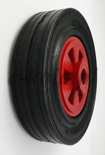 Koła i zestawy kołowe tworzywowo-gumowe to koła z pełnymi oponami gumowymi i tworzywowymi obręczami z polipropylenu. Bieżnik koła wykonany jest z standardowej pełnej gumy tłumiącej wibrację oraz odpornej na wstrząsy. Dzięki właściwością nie niszczącym podłoża oraz odporności na wiele substancji (poza olejem) ma szerokie zastosowanie w przemyśle. Bieżnik wykonany z pełnej opony gumowej można stosować w temperaturze -30°C do +80°C. Uniwersalna wersja opony gumowej posiada twardość 85° Shore A. Połączenie gumowej opony z obręczą tworzywową z polipropylenu z dodatkowym zastosowaniem łożysk ślizgowy daję idealny zestaw koła odpornego na korozję.