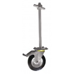 Koła i zestawy kołowe do rusztowań z regulacją wysokości składają się z podstawy śrubowej do rusztowań o długości 400mm lub 500mm oraz koła metalowo-gumowego w obudowie skrętnej. Podstawa do rusztowania posiada gwintowy trzpień o średnicy Ø26, Ø32, Ø42, nakrętką i gniazdem na rurę ramy stalowej. Zagnieciony gwint zabezpiecza przed wykręceniem nakrętki. Podstawy mają przewiercone otwory co umożliwia przykręcenie ich do kół Ø160mm lub Ø200mm dostępnych w naszym sklepie w obudowie skrętnej z hamulcem, który blokuje koło i głowicę skrętną za pomocą bardzo mocnego mechanizmu.