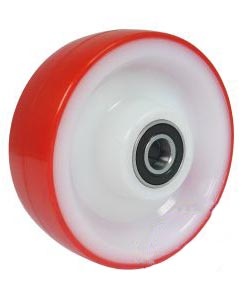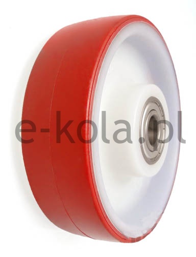 Koła i zestawy kołowe poliamidowo-poliuretanowe składają się z uformowanego bieżnika poliuretanowego nałożonego na stałe na poliamidowym korpusie. Poliuretanowy bieżnik koła jest elastyczny, nie niszczy podłoża a jego praca podczas toczenia jest mniej hałaśliwa. Twardość poliuretanowego bieżnika koła wynosi 90° Shore’a. Charakteryzuje się odpornością na ścieranie oraz wiele substancji agresywnych, wykazuje niewielki opór na toczenie. Może być stosowany od -20 do +70°C. Nadają się idealnie do wyrobów o wysokich wymaganiach wytrzymałościowych. Korpus koła poliamidowego jest jednolity w kolorze naturalnym (białym). Koła i zestawy kołowe poliamidowo-poliuretanowe dostępne są z korpusem tworzywowym w kolorze białym oraz bieżnikiem poliuretanowym w kolorze czerwonym.