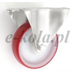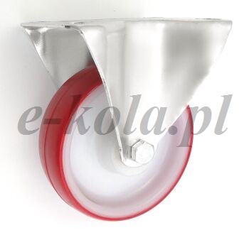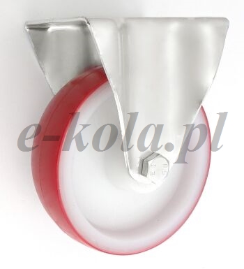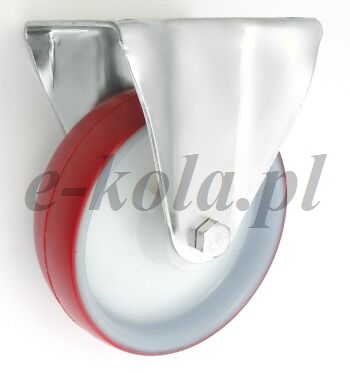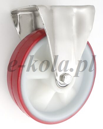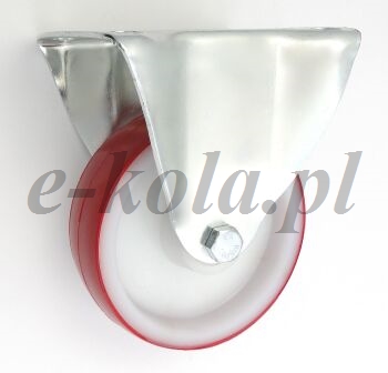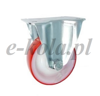 Koła poliamdowo-poliuretanowe w obudowie stałej składają się z uformowanego bieżnika poliuretanowego nałożonego na stałe na poliamidowym korpusie oraz ze stabilnej stalowej obudowy tłoczonej. Koło występujące w tej obudowie osadzone jest na tulejce, montowane jest z kielichem obudowy za pomocą śruby i nakrętki. Zestawy kołowe stałe nie obracają się. Takiego typu obudowa zapewnia urządzeniom stabilność kierunku w linii prostej.