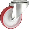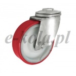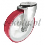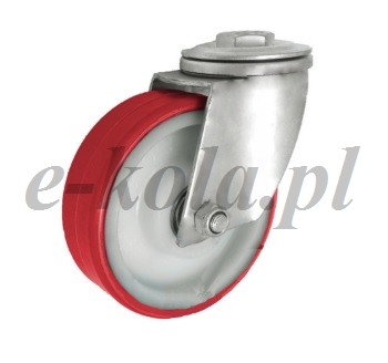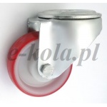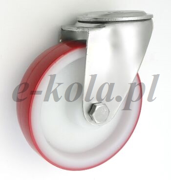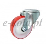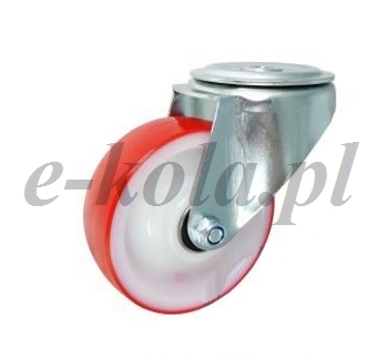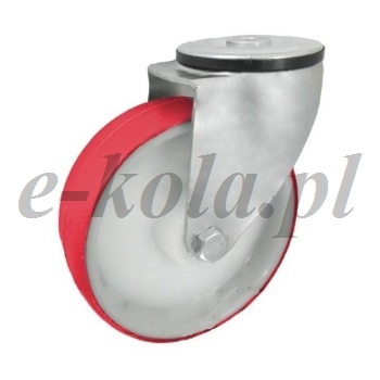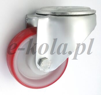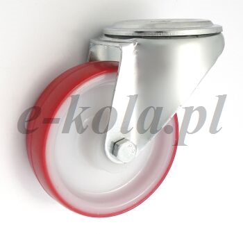 Koła poliamdowo-poliuretanowe w obudowie z otworem składają się z koła z uformowanego bieżnika poliuretanowego nałożonego na stałe na poliamidowym korpusie oraz ze stabilnej stalowej obudowy tłoczonej z centralnym otworem na śrubę mocującą. Koło występujące w tej obudowie osadzone jest na tulejce, montowane jest z kielichem obudowy za pomocą śruby i nakrętki. Precyzyjne wykonanie obudowy skrętnej umożliwia obracanie zestawu skrętnego w pionie oraz dowolne manewry maszynami, środkami transportowymi itd. Specjalna budowa pozwala na łatwe skręcanie zestawem bez dodatkowych sił i środków pomocniczych oraz zachowanie stabilnego kierunku ruchu w linii prostej. Koła i kółka poliamidowo-poliuretanowe występują z łożyskiem wałeczkowym (zabezpieczone smarem), kulkowym (rozmiar łożyska dostosowany do średnicy koła) oraz ślizgowym.