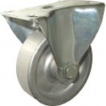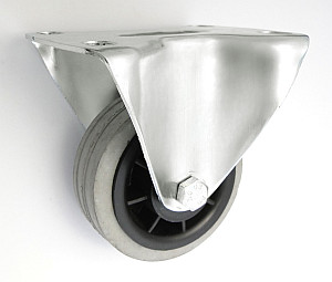 Koła tworzywowe w obudowie stałej składają się z koła poliamidowego PA 6 oraz ze stabilnej stalowej obudowy tłoczonej. Koło występujące w tej obudowie osadzone jest na tulejce, montowane jest z kielichem obudowy za pomocą śruby i nakrętki. Zestawy kołowe stałe nie obracają się. Takiego typu obudowa zapewnia urządzeniom stabilność kierunku w linii prostej. Koła i kółka tworzywowe posiadają niski współczynnik tarcia, a także wysoką odporność cieplną, dopuszczalna temperatura pracy ciągłej to przedział od -20 do +80°C. Koła wykonane z pomiaru są odporne na pęknięcia, nie niszczą podłoża, tłumią hałas oraz wstrząsy. Cechują się długa żywotnością oraz bardzo niskim oporem toczenia i odpornością na wiele agresywnych substancji chemicznych. Obudowy kół tłoczone są z wysokiej jakości stali nierdzewnej.