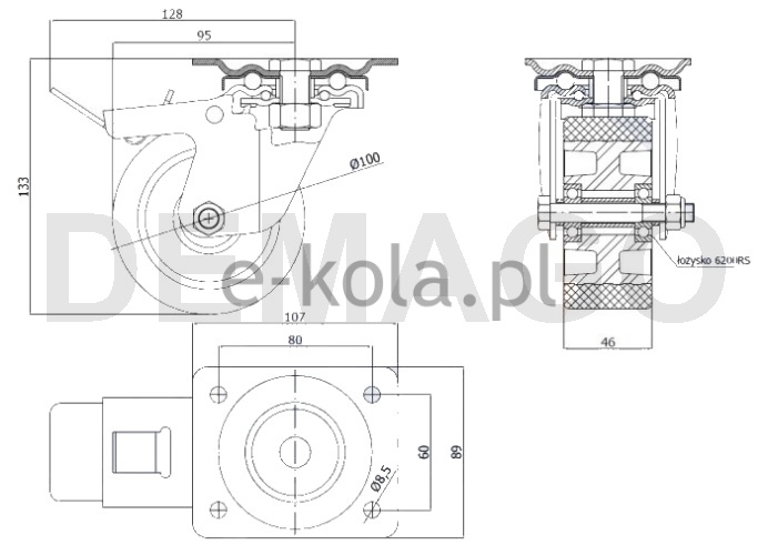 | Wysokość zestawu skrętnego i z otworem (mm) | 133 |