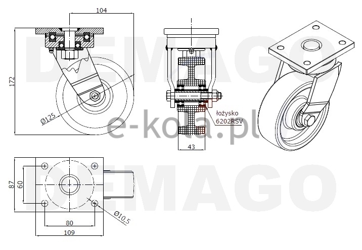 | Średnica koła (mm) | 125 |