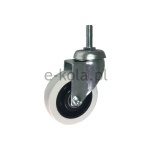 Koła i zestawy kołowe meblowe w obudowie z trzpieniem składają się z koła tworzywowego bądź tworzywowo-gumowego oraz ze stabilnej stalowej obudowy tłoczonej z trzpieniem. Koło występujące w tej obudowie osadzone i montowane jest z kielichem obudowy za pomocą nitu. Precyzyjne wykonanie obudowy skrętnej z płytką mocującą umożliwia obracanie zestawu skrętnego w pionie oraz dowolne manewry maszynami, środkami transportowymi itd. Specjalna budowa pozwala na łatwe skręcanie zestawem bez dodatkowych sił i środków pomocniczych oraz zachowanie stabilnego kierunku ruchu w linii prostej. Zestawy z trzpieniem posiadają trzpień gładki lub gwintowany, który umożliwia montaż w rurce lub specjalnie przygotowanym otworze.
