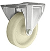 Koła i kółka tworzywowe odporne na wysoką temperaturę w obudowie stałej składają się z koła o jednolitym korpusie wykonanym wtryskowo z poliamidu PA 66 oraz ze stabilnej stalowej obudowy tłoczonej bądź obudowy spawanej. Koło występujące w tej obudowie osadzone jest na tulejce, montowane jest z kielichem obudowy za pomocą śruby i nakrętki. Zestawy kołowe stałe nie obracają się. Takiego typu obudowa zapewnia urządzeniom stabilność kierunku w linii prostej. Koła wykonane z poliamidu PA 66 zawierają 30% włókna szklanego, co wpływa na jego stabilizację termiczną, zapewnia wysoką odporność cieplną. Koła te występuje również w kolorze czarnym. Dostępne jest z łożyskiem ślizgowym. Koła i kółka tworzywowe odporne na wysoką temperaturę charakteryzują się wysoką odpornością na ścieranie oraz na temperaturę od -40 do +130°C.