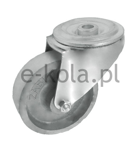 Koła aluminiowe na temperaturę w obudowie z otworem składają się z koła z jednolitego odlewu wykonanego z aluminium, zawierający tuleję ślizgową oraz ze stabilnej stalowej obudowy tłoczonej z centralnym otworem na śrubę mocującą. Koło występujące w tej obudowie osadzone jest na tulejce, montowane jest z kielichem obudowy za pomocą śruby i nakrętki. Precyzyjne wykonanie obudowy skrętnej umożliwia obracanie zestawu skrętnego w pionie oraz dowolne manewry maszynami, środkami transportowymi itd. Specjalna budowa pozwala na łatwe skręcanie zestawem bez dodatkowych sił i środków pomocniczych oraz zachowanie stabilnego kierunku ruchu w linii prostej.