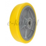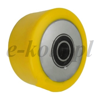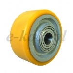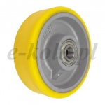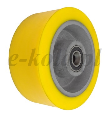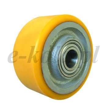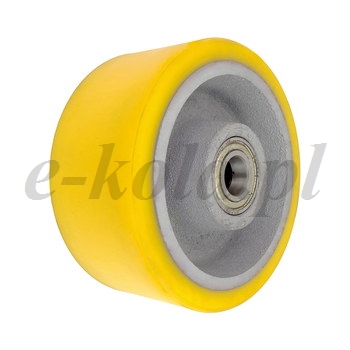Koła i zestawy kołowe żeliwno-poliuretanowe do dużych obciążeń składają się z jednolitego, obrabianego maszynowo korpusu z odlewu żeliwnego z trwale połączonym bieżnikiem poliuretanowym. Bieżnik koła wykonany jest z poliuretanu zapewnia wysoką odporność na zużycie, nie brudzi posadzki. Koła występują z łożyskiem kulkowym. Łożysko kulkowe osadzone jest w piaście żeliwnej koła z tuleją dystansową. Żeliwny korpus koła pokrywany jest farbą proszkową w kolorze srebrnym. Koła kółka żeliwne cechują się wysoką wytrzymałością na obciążenia i posiadają wysoką odporność na zużycie. Bieżnik koła wykonany jest z poliuretanu zapewnia wysoką odporność na zużycie, nie brudzi posadzki.Poliuretan jest wysokiej jakości materiałem, który dzięki wysokim modułom sprężystości i sztywności, szczególnie nadaje się na bieżnik. Charakteryzuje się wysoką nośnością, posiada małe odkształcenia trwałe. Koła i kółka żeliwno-poliuretanowe do dużych obciążeń są niewrażliwe na zabarwienia. Koła i zestawy kołowe żeliwno-poliuretanowe do dużych obciążeń występują w obudowach spawanych.