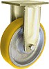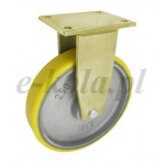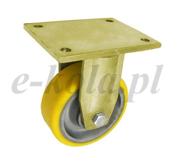 Koła i zestawy kołowe żeliwno-poliuretanowe obciążeń w obudowie stałej składają się z koła jednolitego, obrabianego maszynowo korpusu z odlewu żeliwnego z trwale połączonym bieżnikiem poliuretanowym oraz ze stabilnej stalowej obudowy spawanej. Koło występujące w tej obudowie osadzone jest na tulejce, montowane jest z kielichem obudowy za pomocą śruby i nakrętki. Zestawy kołowe stałe nie obracają się. Takiego typu obudowa zapewnia urządzeniom stabilność kierunku w linii prostej. Koła kółka żeliwne cechują się wysoką wytrzymałością na obciążenia i posiadają wysoką odporność na zużycie. Bieżnik koła wykonany jest z poliuretanu zapewnia wysoką odporność na zużycie, nie brudzi posadzki. Poliuretan jest wysokiej jakości materiałem, który dzięki wysokim modułom sprężystości i sztywności, szczególnie nadaje się na bieżnik.