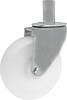 Koła tworzywowe w obudowie stałej składają się z koła poliamidowego PA 6 oraz ze stabilnej stalowej obudowy tłoczonej. Koło występujące w tej obudowie osadzone jest na tulejce, montowane jest z kielichem obudowy za pomocą śruby i nakrętki. Zestawy kołowe stałe nie obracają się. Takiego typu obudowa zapewnia urządzeniom stabilność kierunku w linii prostej. Obudowy kół tłoczone są z wysokiej jakości stali nierdzewnej.