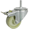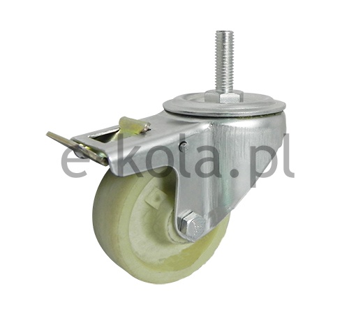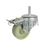 Koła i kółka tworzywowe odporne na wysoką temperaturę w obudowie z trzpieniem i hamulcem składają się z koła o jednolitym korpusie wykonanym wtryskowo z poliamidu PA 66 oraz ze stabilnej stalowej obudowy tłoczonej z trzpieniem. Koło występujące w tej obudowie osadzone jest na tulejce, montowane jest z kielichem obudowy za pomocą śruby i nakrętki. Precyzyjne wykonanie obudowy skrętnej z płytką mocującą umożliwia obracanie zestawu skrętnego w pionie oraz dowolne manewry maszynami, środkami transportowymi itd. Specjalna budowa pozwala na łatwe skręcanie zestawem bez dodatkowych sił i środków pomocniczych oraz zachowanie stabilnego kierunku ruchu w linii prostej.
