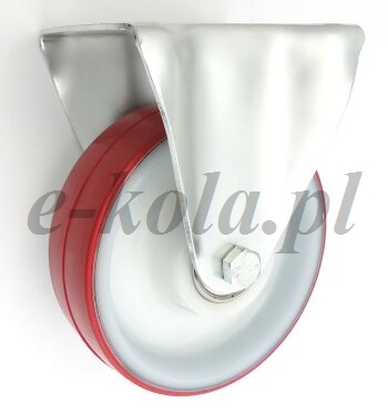 Koła poliamdowo-poliuretanowe w obudowie stałej składają się z uformowanego bieżnika poliuretanowego nałożonego na stałe na poliamidowym korpusie oraz ze stabilnej stalowej obudowy tłoczonej. Koło występujące w tej obudowie osadzone jest na tulejce, montowane jest z kielichem obudowy za pomocą śruby i nakrętki. Zestawy kołowe stałe nie obracają się. Takiego typu obudowa zapewnia urządzeniom stabilność kierunku w linii prostej.