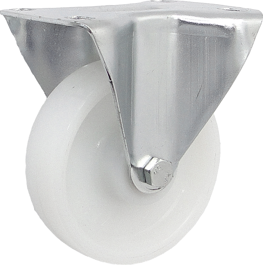 Koła tworzywowe w obudowie stałej składają się z koła poliamidowego PA 6 oraz ze stabilnej stalowej obudowy tłoczonej. Koło występujące w tej obudowie osadzone jest na tulejce, montowane jest z kielichem obudowy za pomocą śruby i nakrętki. Zestawy kołowe stałe nie obracają się. Takiego typu obudowa zapewnia urządzeniom stabilność kierunku w linii prostej. Koła i kółka tworzywowe posiadają niski współczynnik tarcia, a także wysoką odporność cieplną, dopuszczalna temperatura pracy ciągłej to przedział od -20 do +80°C. Koła wykonane z pomiaru są odporne na pęknięcia, nie niszczą podłoża, tłumią hałas oraz wstrząsy. Cechują się długa żywotnością oraz bardzo niskim oporem toczenia i odpornością na wiele agresywnych substancji chemicznych. Obudowy kół tłoczone są z wysokiej jakości stali nierdzewnej.