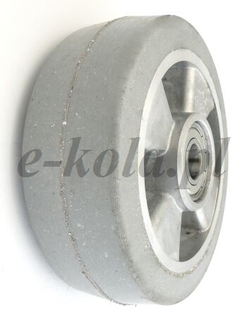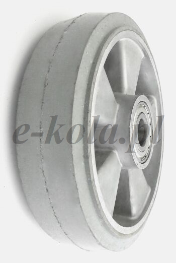 Koła i zestawy kołowe aluminiowo-gumowe to koła składające się z aluminiowego korpusu trwale połączonego z oponą z pełnej gumy. Bieżnik koła wykonany jest z pełnej gumy o twardości 85°Shore’a o bardzo wysokim komforcie jazdy i niewielkim oporze toczenia. Pełna opona jest trwale połączona z korpusem aluminiowy poprzez wulkanizację na tarczę koła. Dzięki właściwością nie niszczącym podłoża oraz odporności na wiele substancji (poza olejem) mają szerokie zastosowanie w przemyśle. Koła i kółka aluminiowo-gumowe można stosować w temperaturach od -25°C do +80°C. Bieżnik koła wykonany jest z pełnej gumy o twardości 85°Shore’a o bardzo wysokim komforcie jazdy i niewielkim oporze toczenia. Dostępne są z łożyskami kulkowymi osadzonymi w piaście aluminiowej.