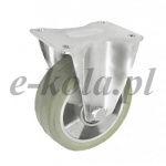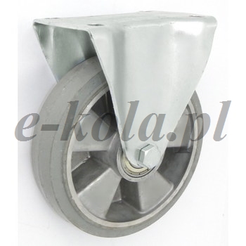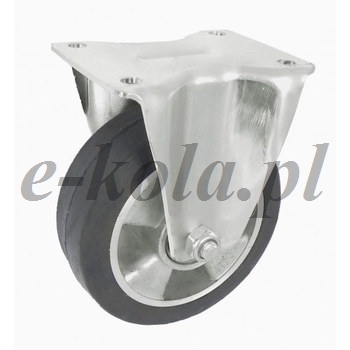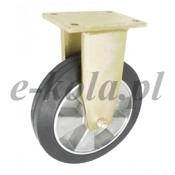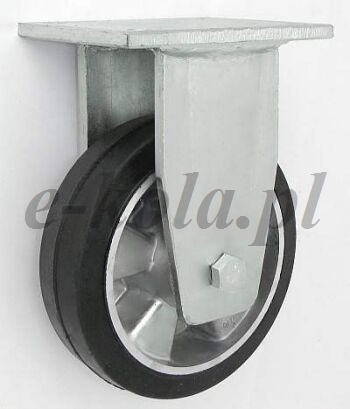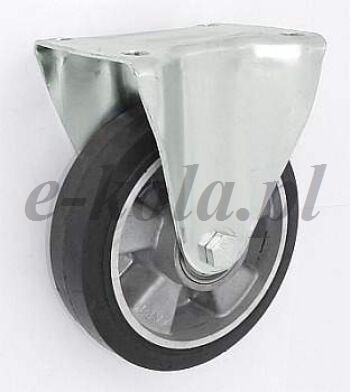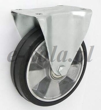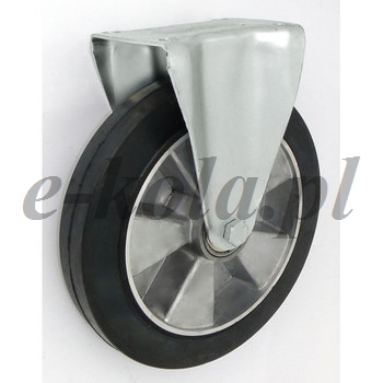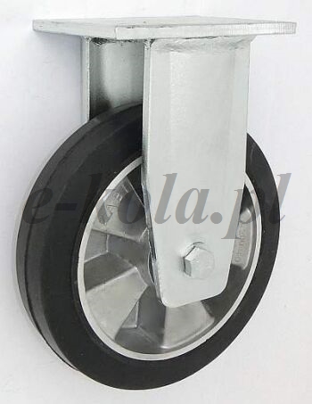 Koła aluminiowo-gumowe w obudowie stałej składają się z koła składające się z aluminiowego korpusu trwale połączonego z oponą z pełnej gumy oraz ze stabilnej stalowej obudowy tłoczonej. Koło występujące w tej obudowie osadzone jest na tulejce, montowane jest z kielichem obudowy za pomocą śruby i nakrętki. Zestawy kołowe stałe nie obracają się. Takiego typu obudowa zapewnia urządzeniom stabilność kierunku w linii prostej