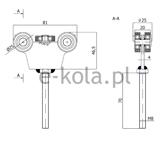 5 rolkowy z płaskownikiem i śrubą M8x55